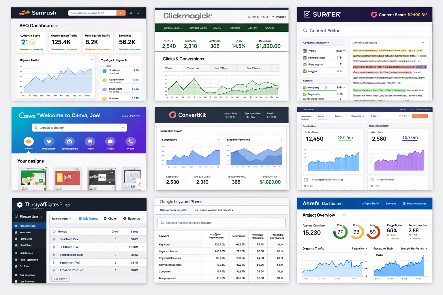 Choosing the right mix of tools is a practical way for affiliates to scale in 2026. For most publishers, an audit-first approach works best: evaluate site performance, pick one all‑in‑one platform or a specialist for the highest-priority gap, then validate with a short paid plan or free trial. Semrush suits affiliates who want an all‑in‑one SEO and competitive research suite; Ahrefs excels at backlink and link-growth strategies; ClickMagick provides link-level tracking and split‑testing; and ConvertKit covers email funnels and customer nurture.